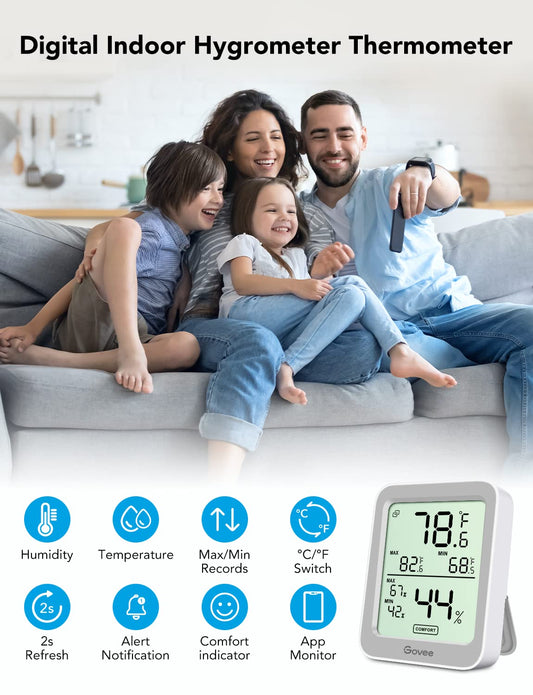 Govee Bluetooth Hygrometer Thermometer, Wireless Thermometer, Mini Humidity Sensor with Notification Alert, Data Storage and Export, 262 Feet Connecting Range