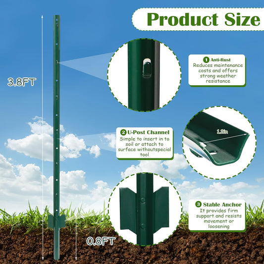 Sunnyglade 20 Pack 3.8 FT Heavy Duty Metal U-Post Garden Fence Stakes, No Dig U-Channel Fence Posts, Corner Anchor Poles for Wire, Electric, Mesh Fencing (20)