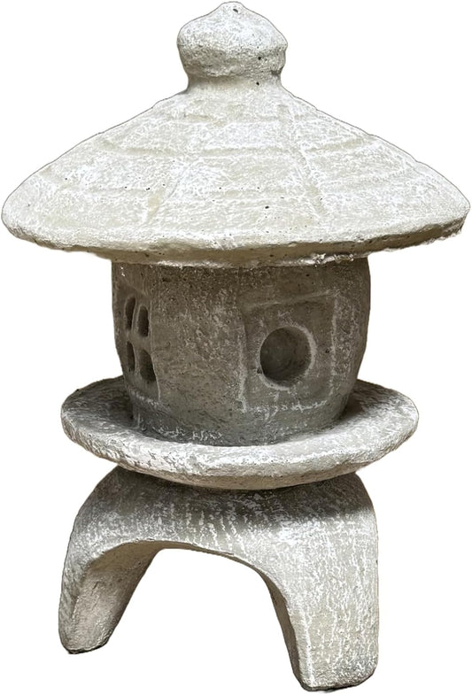 Solid Rock Stoneworks Small Round Concrete Pagoda Statue for Garden, Japanese/Chinese/Asian Style- Marble Tone Color