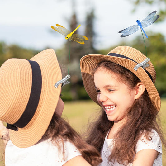 Jongdari 12pcs Dragonfly Hat Clip Bug Repellent Realistic Fake Dragonflies Clip-On Garden Outdoor Decor Stakes Plastic Dragon Fly Clips Plant Decorations for Pot