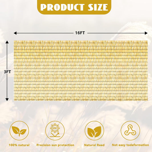 Bamboo Reed Fencing, Natural Reed Fence Rolls 4 Feet High, Decorative Bamboo Privacy Curtains for Patio Garden Balcony Backyard Outdoor, 4 x 16 FT