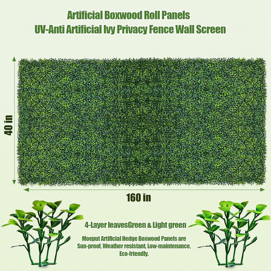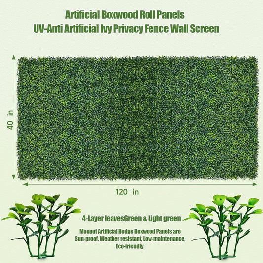Artificial Boxwood Roll,120x40 in (34 sqft) UV-Anti Faux Ivy Boxwood Hedge Leaf Grass Wall for Patio Balcony Privacy, Garden, Backyard Greenery Wall Backdrop and Fence Decor