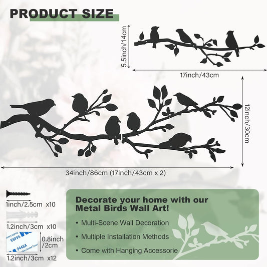 ULENDIS 3Pcs Large Metal Birds Wall Art, Bird on Branch Metal Birds Wall Decor Leaves with Bird Silhouette Sculpture, Ornament Branch Wall Hanging Sign for Balcony Garden Indoor Outdoor Decor