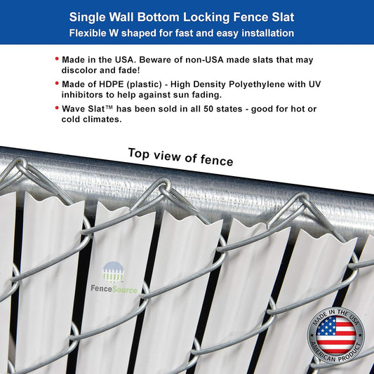 Wave Slat (9 Colors) Single Wall Bottom Locking Privacy Slat for 4', 5', 6', 7' and 8' Chain Link Fence (5 ft, White)