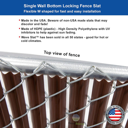 Wave Slat (9 Colors) Single Wall Bottom Locking Privacy Slat for 4', 5', 6', 7' and 8' Chain Link Fence (4 ft, Brown)