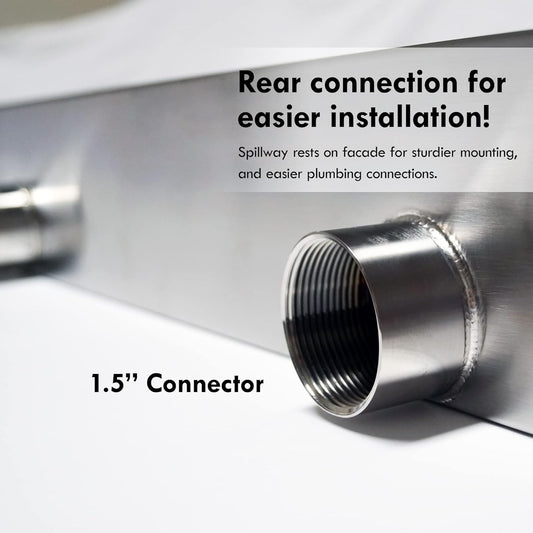 12 Inch Pool Fountain 304 Stainless Steel Waterfall Spillway with Pipe Connector Kits, Wider Water Flow Sheer Descent Platform Water Feature Fountain for Swimming Pool, Outdoor Garden Decor