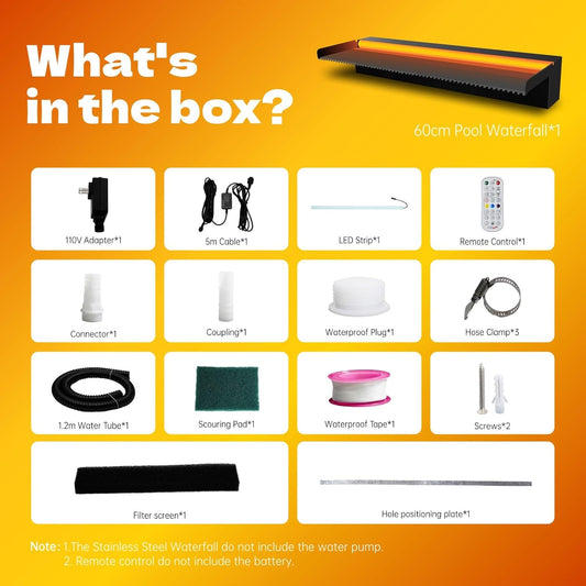 Pool Fountain Stainless Steel Pond Waterfall Spillway Kits for Indoor/Outdoor Decorative, 24 Inches Pool Water Feature for Garden Patio, Backyard Koi Pond Decor(No LED Light)