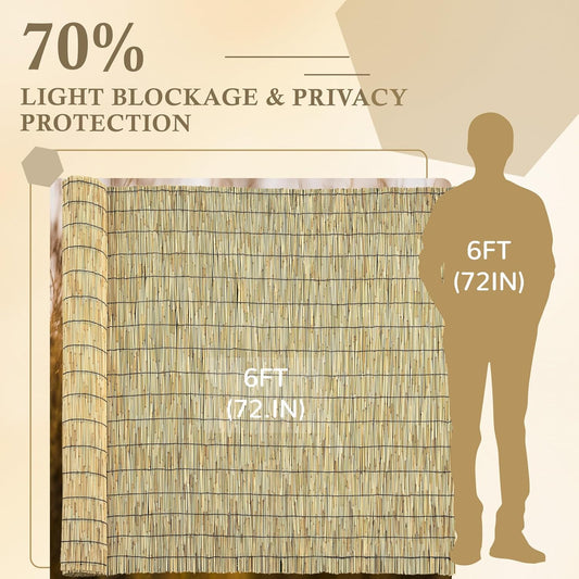 1 Pack Reed Fencing Rolls, Decorative Bamboo Fencing 6ft High Roll Reed Screen, Bamboo Reed for Balcony Patio Garden Backyard Outdoor
