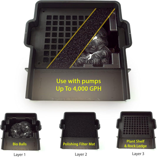 HALF OFF PONDS 16-Inch Filtering Waterfall Spillway Kit for Ponds and Waterfall Streams up to 4,000 gallons. Includes 2,100 GPH (144w) Pump, Waterfall Box, Filter Media, and 12.5 FT Tubing.