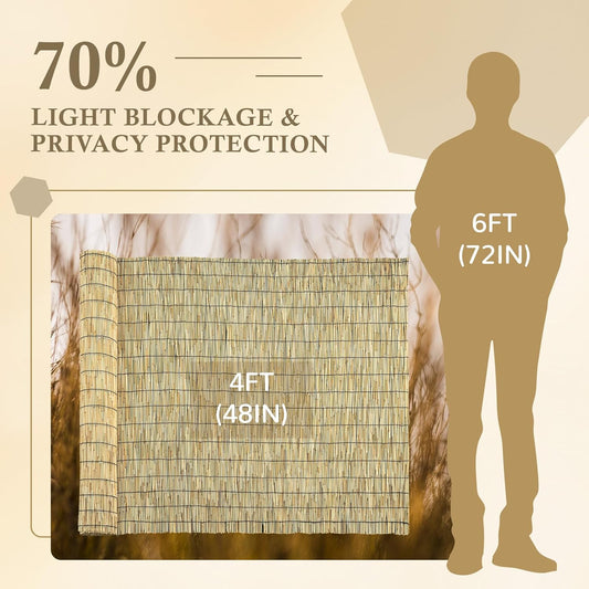 Natural 4FT X 16.4FT Reed Fencing Roll, Balcony Privacy Shade Reed Bamboo Fencing Garden Fence Border, Wind Block Sunshade Fence Screen for Outdoor Yard Patio Flower Bed Edge
