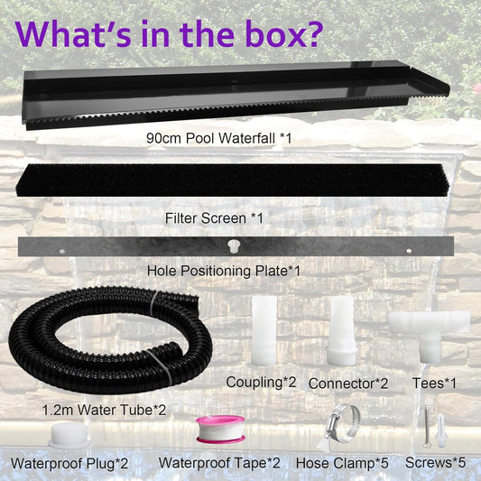 Waterfall Spillway, Clear Acrylic Pool Fountain w/Top Open Lip & Pipe Connector Kits for Outdoor/Indoor Decorative, 35.4'' Pool Water Feature for Garden Patio, Backyard Koi Pond Decor
