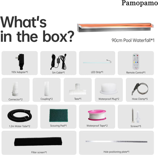 Waterfall Pool Fountain, LONGRUNNEW Stainless Steel Waterfall Spillway with Pipe Connector Kits for Outdoor/Indoor Decorative, 23.6 Inches Pool Water Feature for Garden Patio, Backyard Koi Pond Decor