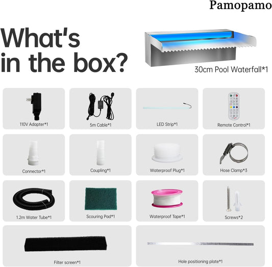 Waterfall Pool Fountain, LONGRUN Acrylic Waterfall Spillway for Pools and Ponds - 11.8" Wide Decorative Water Feature for Swimming Pools, Koi Ponds, and Garden