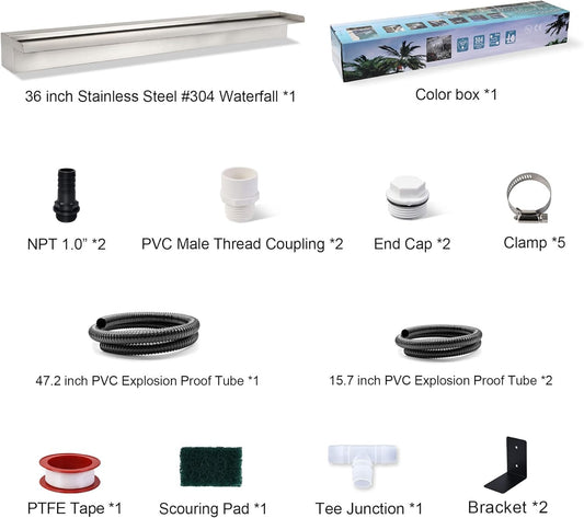 YUDA 36 Inch Water Pool Fountain, 304 Stainless Steel Pool Waterfall with Wider Water Flow Platform, Professional Waterfall Spillway for Sheer Descent Garden Outdoor