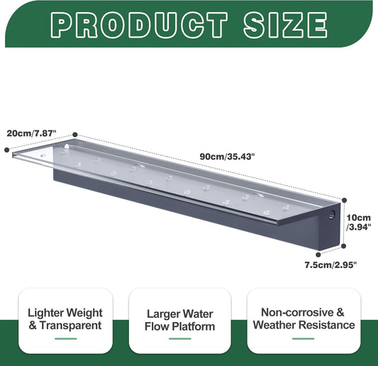 Pool Fountain, LONGRUN Waterfall Spillway for Koi Ponds - 35.4" Transparent Acrylic Waterfall for Swimming Pool, Garden Pond, Patios, Spa Decoration
