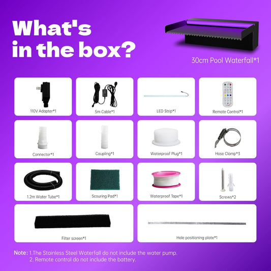 Pool Fountain,Acrylic Waterfall Spillway Pond Fountain,Includes Waterfall Box,Filter Media,Pipe Connector,12 Inches Black Pool Water Feature for Garden Patio,Backyard Koi Pond Decor