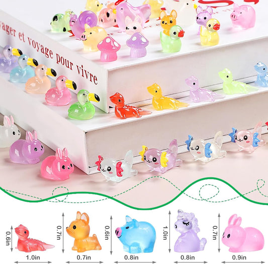 160pcs Luminous Mini Resin Animals Figurines Mini Ducks Dogs Squirrels Giraffes Rabbits Tiny Elephants Miniature Figurines Glow in The Dark Garden Miniatures Fairy Garden Accessories
