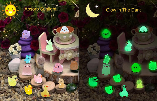 50 Pcs Luminous Mini Resin Animals, Glow in The Dark Tiny Ducks, Frogs, Birds, Cute Dollhouse Miniatures for Crafts, Fairy Garden and Home Décor