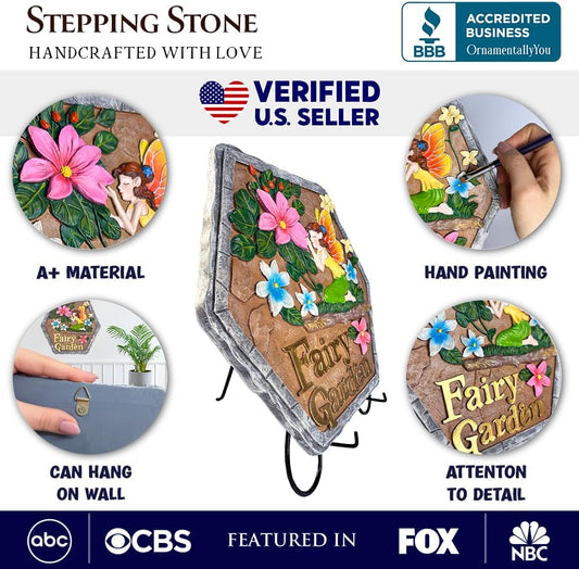 Elegant Resin Stepping Stone, Outdoor Garden Pathway Decoration (Fairy Kisses and Flowers Garden Stepping Stone, 9.5" Outdoor Decoration Statue)