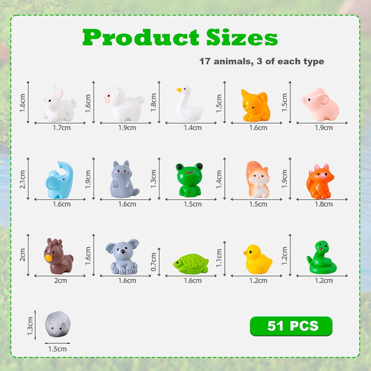 51pcs Fairy Garden Accessories, Mini Resin Animals to Hide, Miniature Figurines Bulk for Landscape Garden Aquarium Outdoor DIY Decor