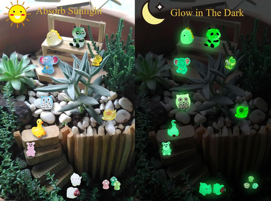 Mini Resin Animals Variety Pack 200 Pcs Luminous Tiny Animals Bulk Glow in The Dark Fairy Garden Miniatures with Tiny Ducks to Hide Around The Home