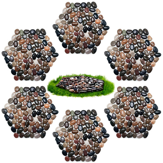 10in River Rock Stepping Stones Set - 6 Pack | Polished Pebble | Long-Lasting PVC Mesh Backing | Perfect for Garden Paths and Lawns Outdoor Landscaping Decoration | Mixed Rhombus