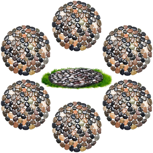 10in River Rock Stepping Stones Set - 6 Pack | Polished Pebble | Long-Lasting PVC Mesh Backing | Perfect for Garden Paths and Lawns Outdoor Landscaping Decoration | Mixed Circle