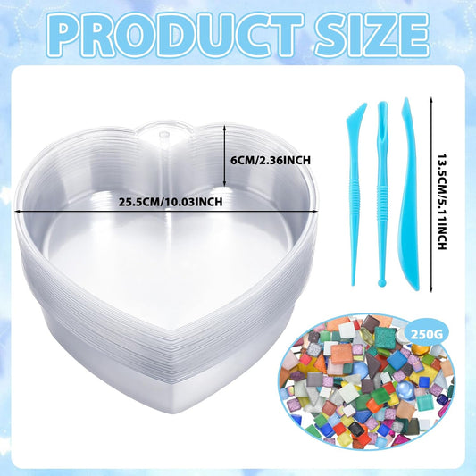 24 Pcs Stepping Stone Kit Includes Concrete Mold, Mosaic Tiles and Carving Tools, DIY Craft Handmade Stepping Stone Kit for Kids, Family, Garden Outdoor Decor, No Concrete Mix(Heart,10 Inch)