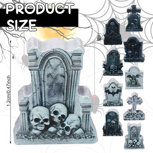 Kathfly 9 Pieces Halloween Miniature Tombstones Mini Village Tombstones Halloween Figurines Miniature Spooky Town for DIY Crafts Outdoor Home Garden Decor(Double Color Style)