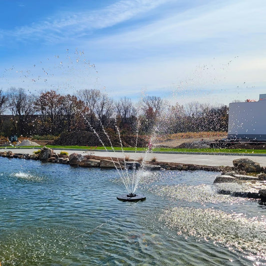 HALF OFF PONDS Floating Fountain – 1/2 HP Pond Aerator, 100' Cord – 6,100 GPH Water Pump – 9 Spray Patterns - Improves Water Quality - for Ponds & Water Gardens