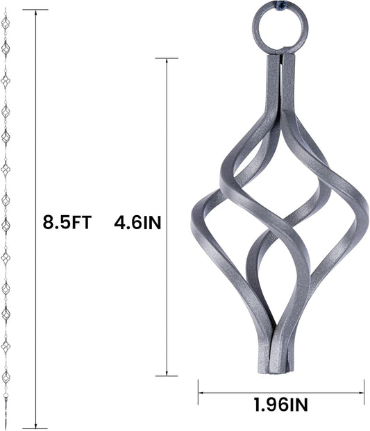 8.5FT Rain Chain, Metal Pinwheel Rain Chains for Gutters Downspouts, Rain Gutter Chain Downspout for Outside Garden, Functional and Decorative Replacement Hanging Rain Catcher Chains