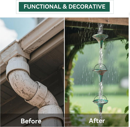 Bronze Funnel Rain Chain 8.6 FT, Decorative Metal Rain Catcher with 12 Cups, Gutter Downspout Replacement