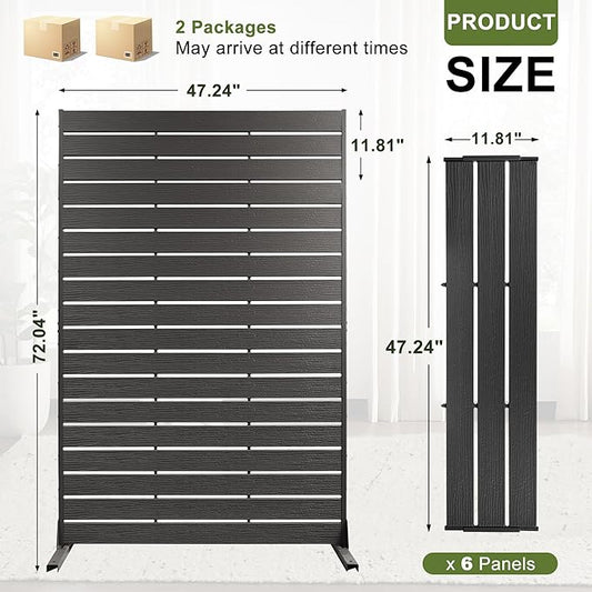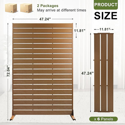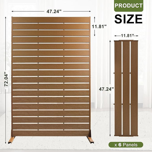 Privacy Screen Outdoor Freestanding Fence Panel, 72" H×47" W HDPE Decorative Screen Panel with Stand & 6 Panel, Air Conditioner Fence, Privacy Panels for Patio, Balcony, Garden, Backyard