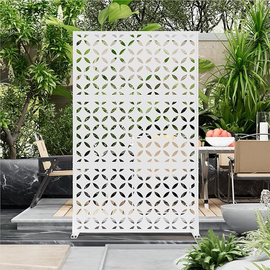 6FT Outdoor Metal Privacy Screen – Decorative Privacy Fence and Room/Garden Divider, Weather-Resistant Freestanding Panel with Stand, Durable Steel for Patio, Garden, Balcony, or Backyard