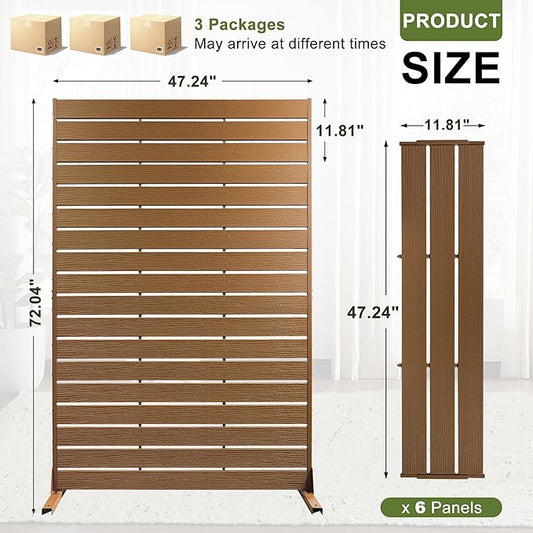 Metal Privacy Screen Outdoor Freestanding Privacy Wall Panels and Decorative Patio Dividers, Crafted from Steel with Sun-Proof Design, Ideal for Patio,Garden,72" H×47" L(Natural Wood-3 Panels