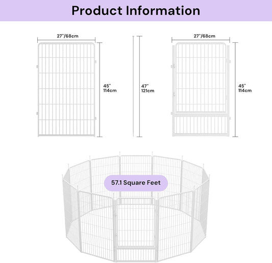 Decorative Garden Fence with Gate 45 in(H) x 26.8 ft(L) 12 Panels, Heavy Duty Metal Animal Barrier Fence for Yard, Flower Bed Fencing, Garden Border Fence, Easy Set Up, White