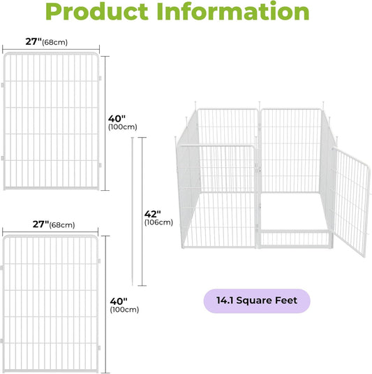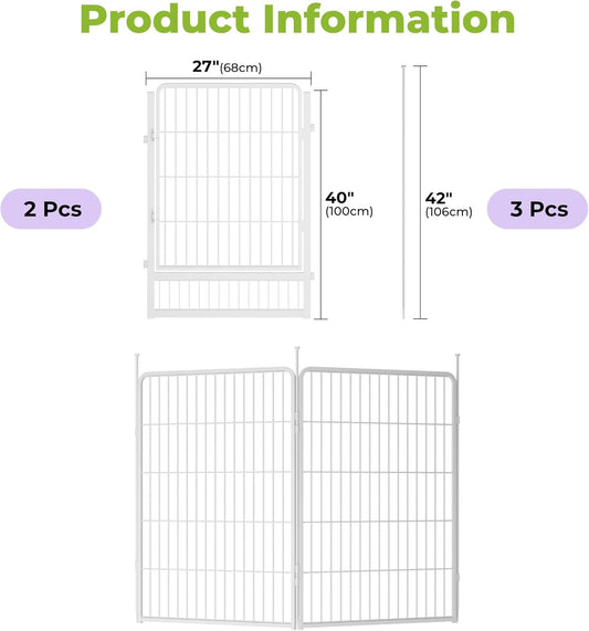 Decorative Garden Fence with Gate 40 in(H) x 17.8 ft(L) 8 Panels, Heavy Duty Metal Animal Barrier Fence for Yard, Flower Bed Fencing, Garden Border Fences, Easy Set Up, White