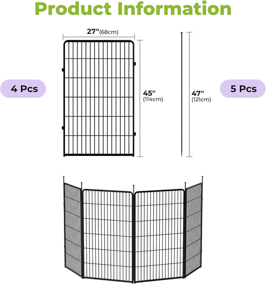 Doorless Garden Fence 45 in(H) x 8.9 ft(L) 4 Panels, Heavy Duty Metal Animal Barrier Fence, No Dig Fence for Dogs, Rabbit Fence for Garden, Black