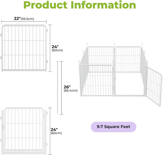 Decorative Garden Fence with Gate 24 in(H) x 14.8 ft(L) 8 Panels, Heavy Duty Metal Animal Barrier Fence for Yard, Flower Bed Fencing, Garden Border Fence, Easy Set Up, White