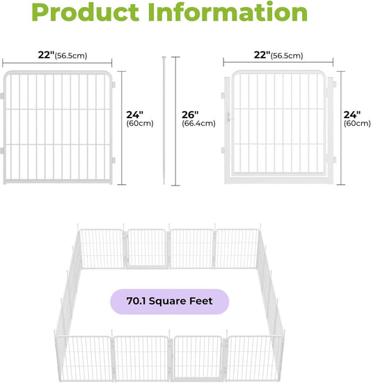 Decorative Garden Fence with Gate 24 in(H) x 29.7 ft(L) 16 Panels, Heavy Duty Metal Animal Barrier Fence for Yard, Flower Bed Fencing, Garden Border Fence, Easy Set Up, White