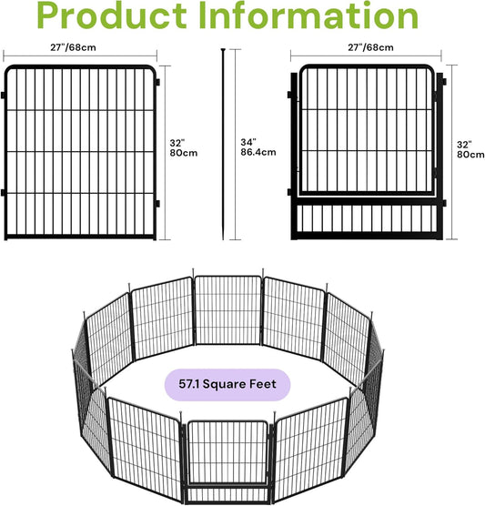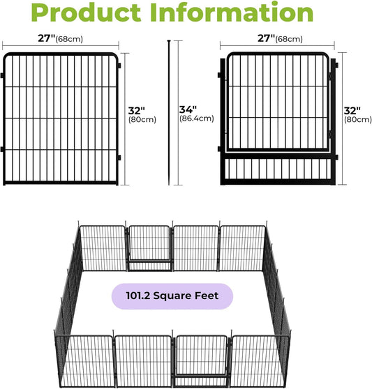 Decorative Garden Fence with Gate 32 in(H) x 26.8 ft(L) 12 Panels, Heavy Duty Metal Animal Barrier Fence for Yard, Flower Bed Fencing, Garden Border Fence, Easy Set Up, Black
