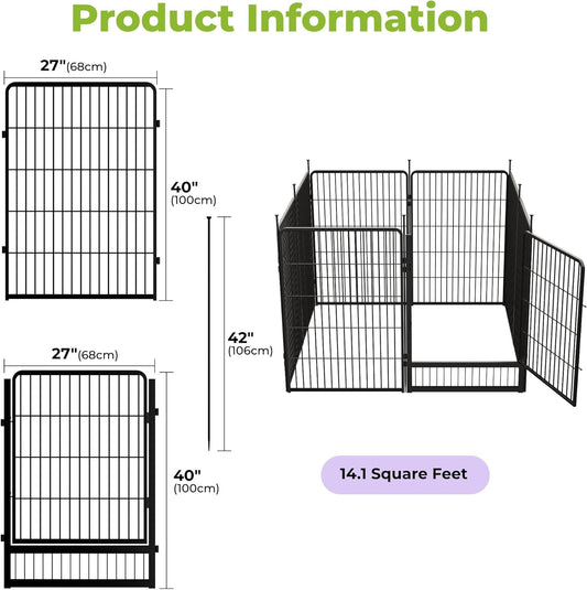 8 Panels Tall No Dig Garden Fence - 40in H x 18ft L, Reinforced Square Tube Rustproof Animal Barrier, Decorative Metal Fencing for Yard & Outdoor Dog Pet Play Areas