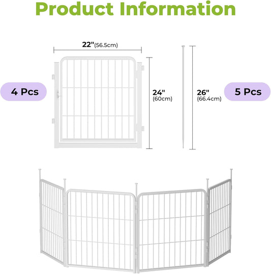 ARIFARO Decorative Garden Fence 4 Panels+1Gate 32in(H) x28in(W) No dig Animal Barrier Fencing,Pet Fence Rustproof Metal Wire Fencing Panel Border for Dog,Rabbits, and Patio(with gate)