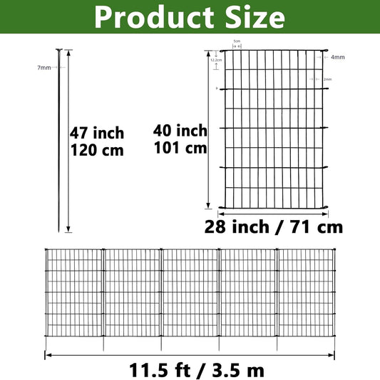 ARIFARO Decorative Garden Fence 5 Panels 40in (H) x 11.5ft (L) No dig Animal Barrier Fencing,Pet Fence Rustproof Metal Wire Panel Border for Dog,Rabbits, and Patio
