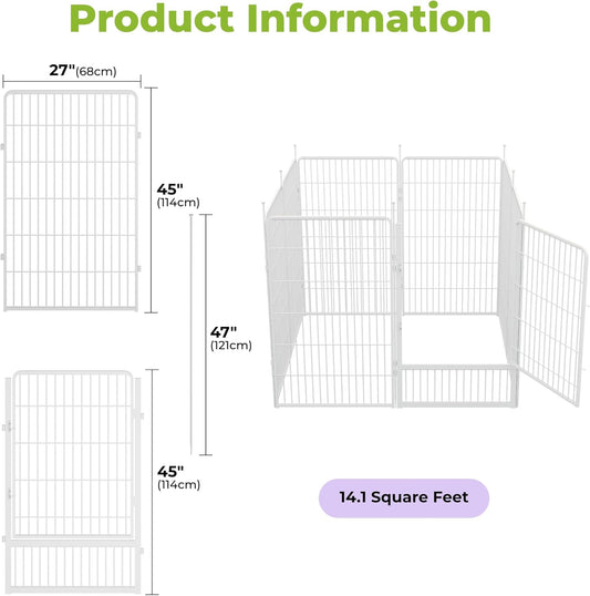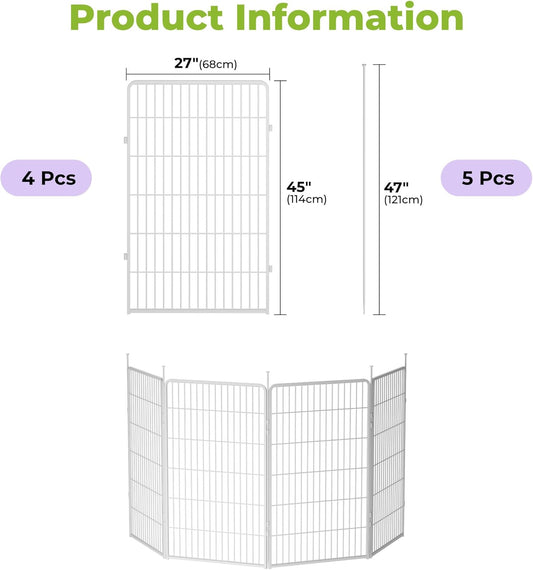 Doorless Garden Fence 45 in(H) x 8.9 ft(L) 4 Panels, Heavy Duty Metal Animal Barrier Fence, No Dig Fence for Dogs, Rabbit Fence for Garden, White