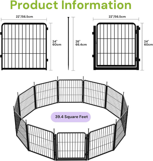 Decorative Garden Fence with Gate 24 in(H) x 22.2 ft(L) 12 Panels, Heavy Duty Metal Animal Barrier Fence for Yard, Flower Bed Fencing, Garden Border Fence, Easy Set Up, Black