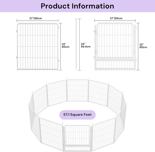 Decorative Garden Fence with Gate 32 in(H) x 17.8 ft(L) 8 Panels, Heavy Duty Metal Animal Barrier Fence for Yard, Flower Bed Fencing, Garden Border Fence, Easy Set Up, White