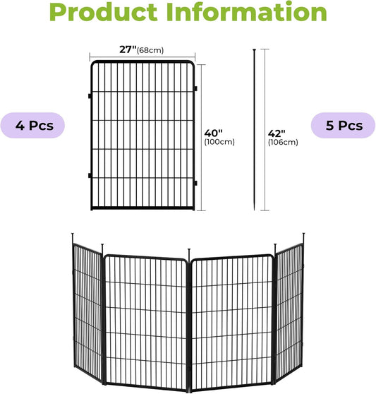 Doorless Garden Fence 40 in(H) x 8.9 ft(L) 4 Panels, Heavy Duty Metal Animal Barrier Fence, No Dig Fence for Dogs, Rabbit Fence for Garden, Black