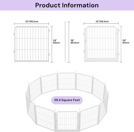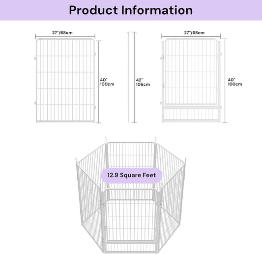 Garden Fence with Gate 40 in(H) x 13.4 ft(L) 6 Panels, Heavy Duty Metal Animal Barrier for Dog and Rabbit, Outdoor Fencing, Easy Set Up, White