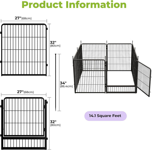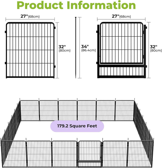 Decorative Garden Fence with Gate 32 in(H) x 17.8 ft(L) 8 Panels, Heavy Duty Metal Animal Barrier Fence for Yard, Flower Bed Fencing, Garden Border Fence, Easy Set Up, Black